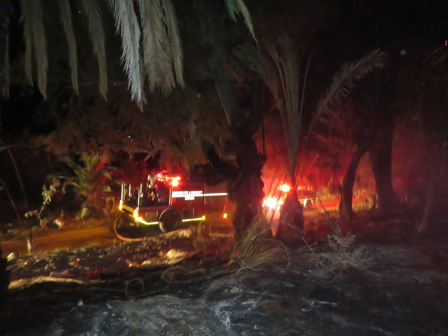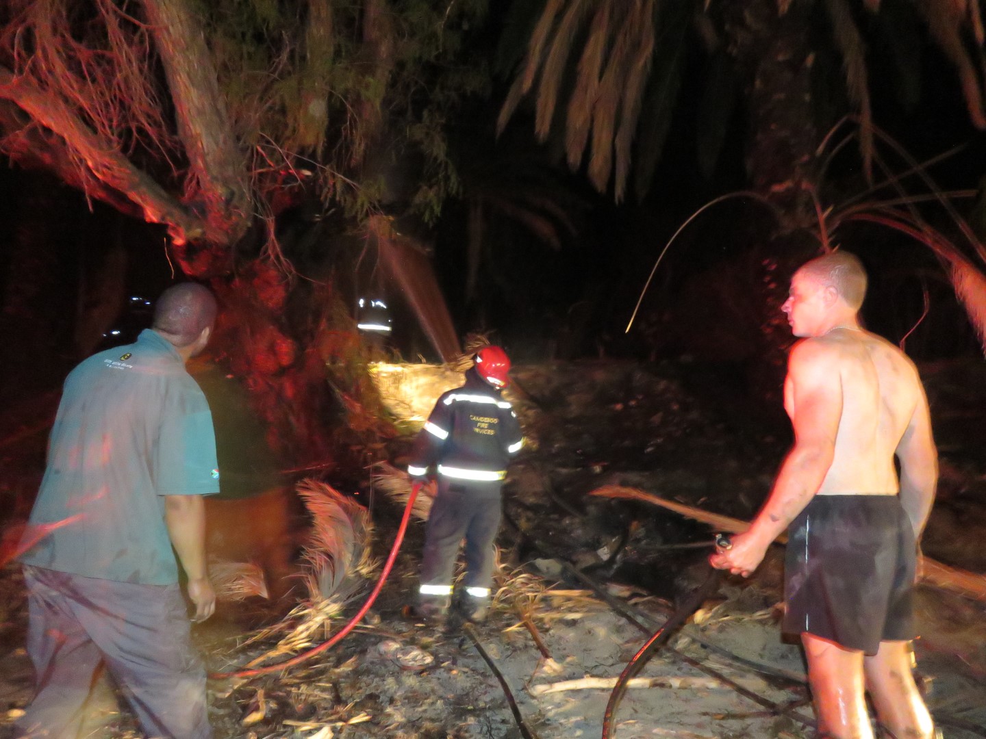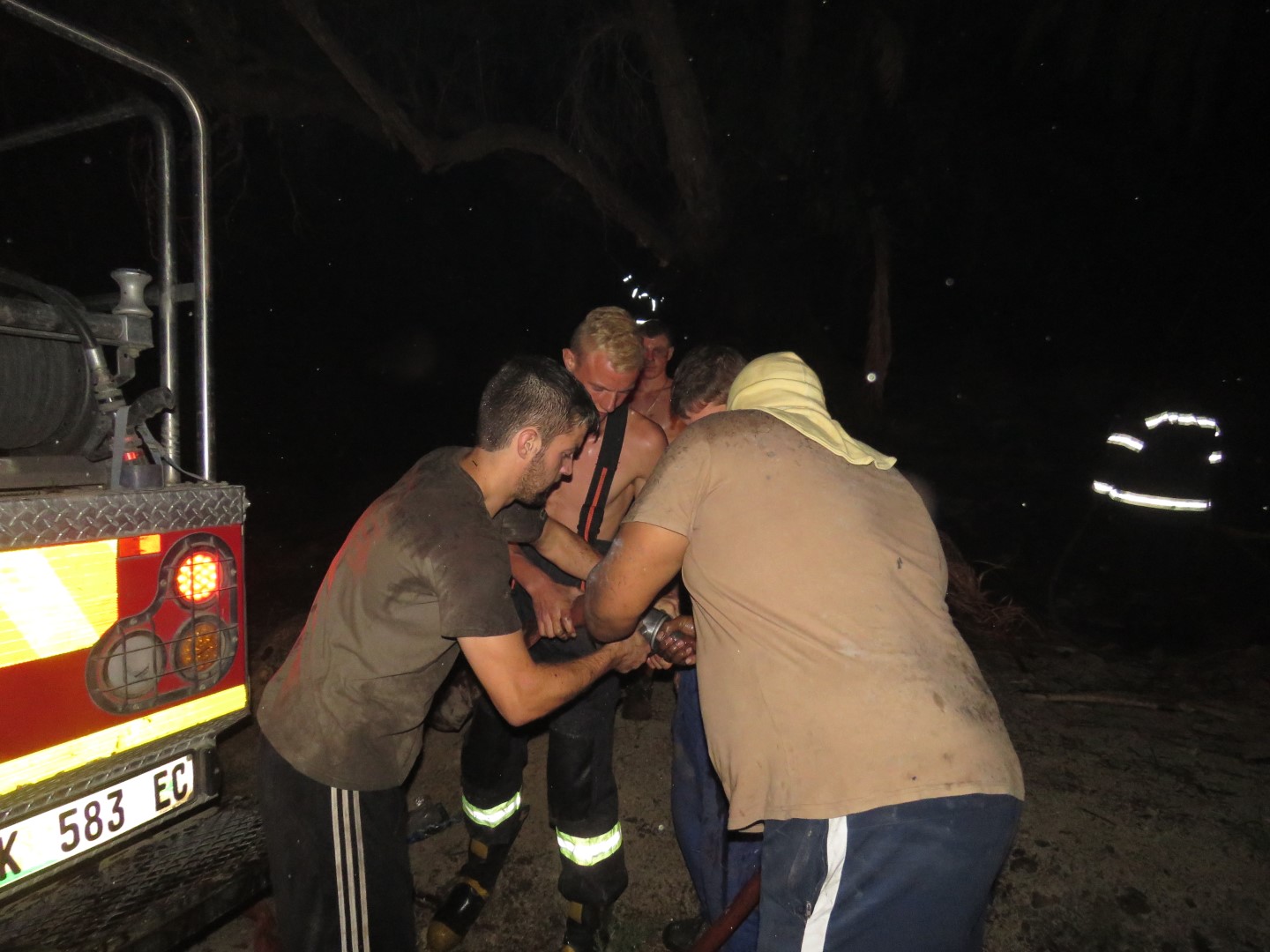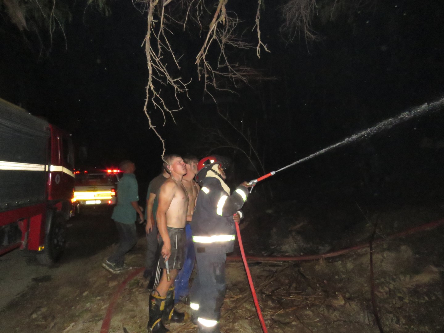 Emergency services had their hands full with yet another fire raging next to the Urquhart Caravan Park last night (28 February). Two municipal fire brigade trucks and two bakkies were on the scene, fighting the fire.