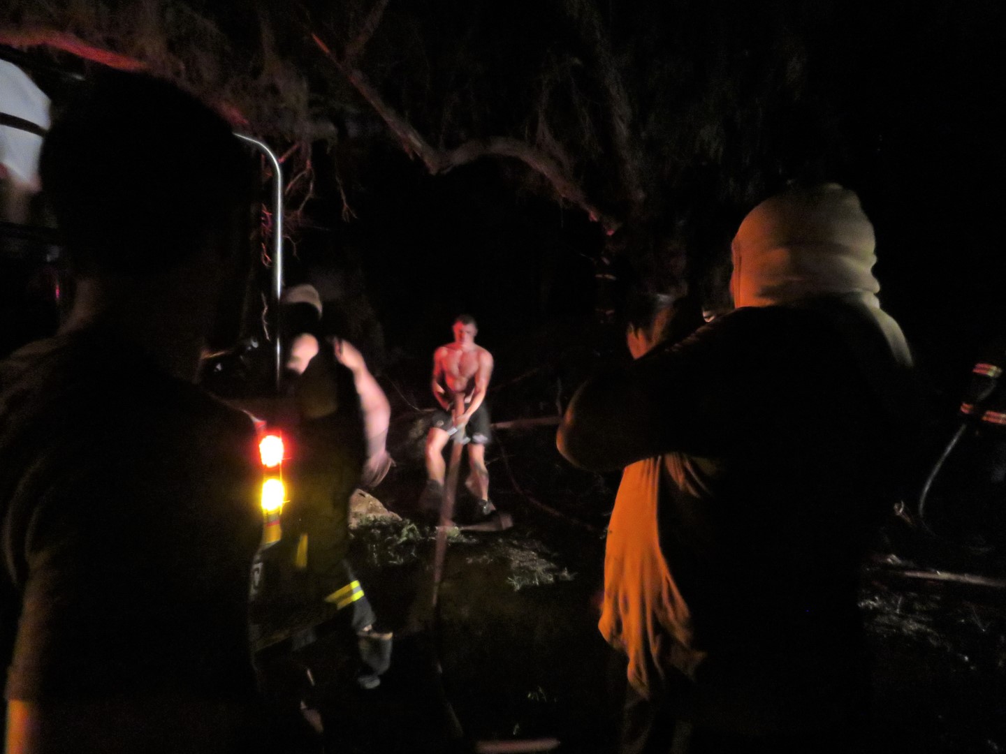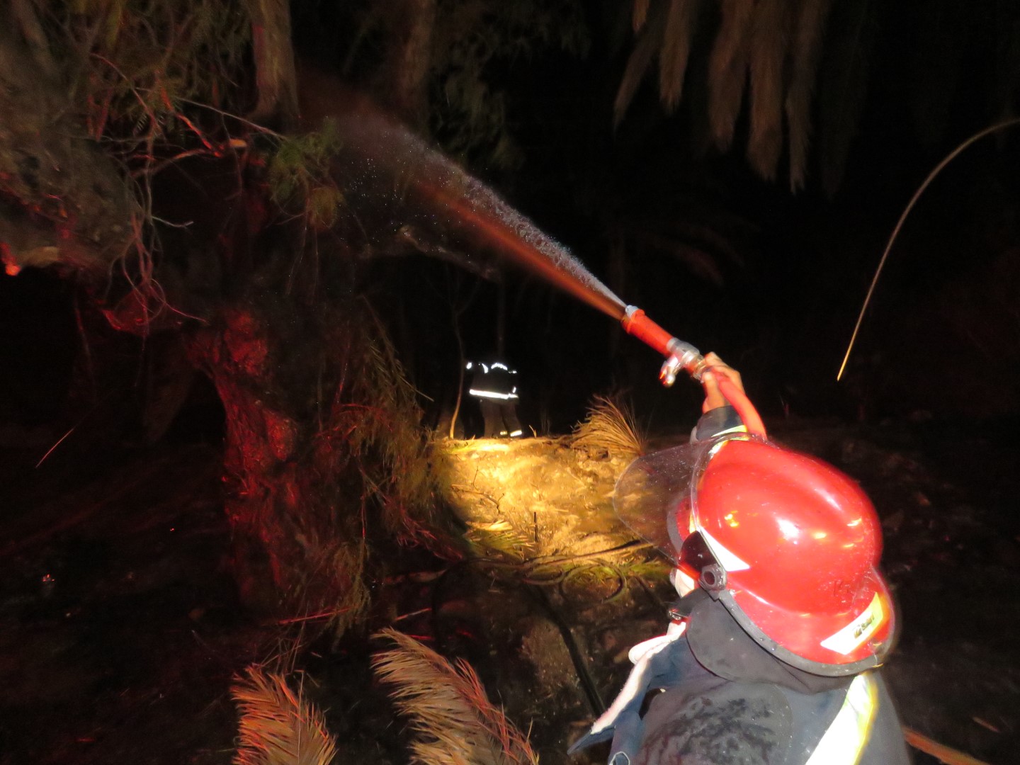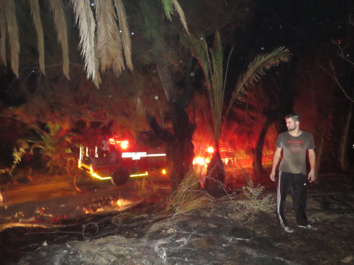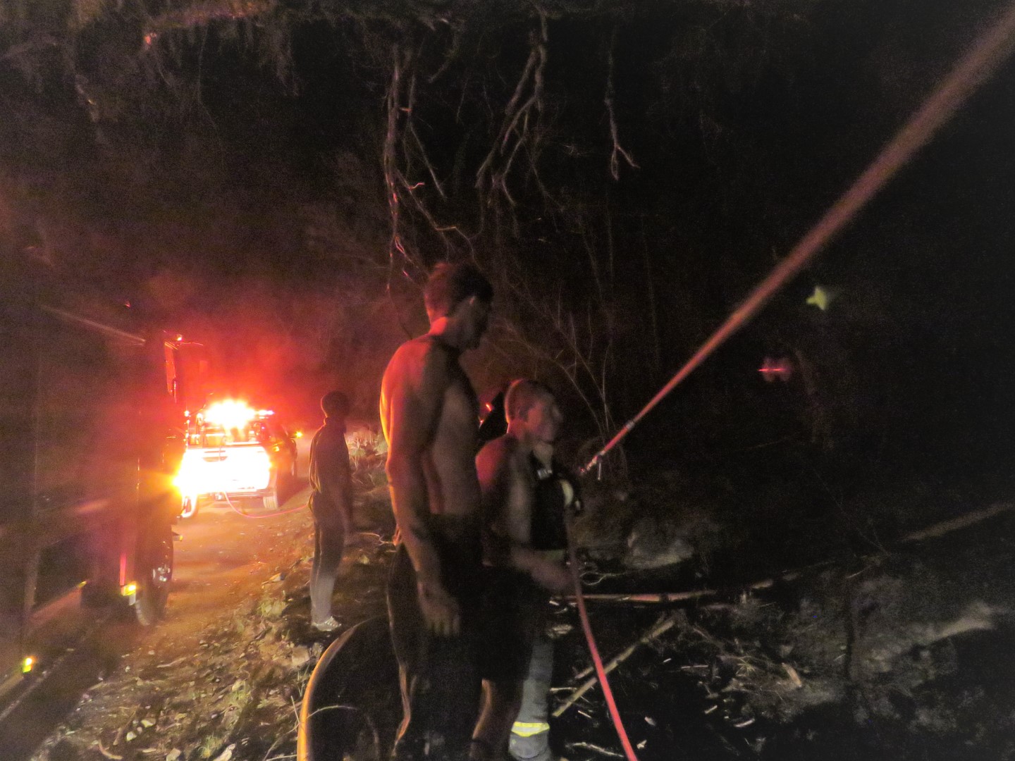 Emergency services had their hands full with yet another fire raging next to the Urquhart Caravan Park last night (28 February). Two municipal fire brigade trucks and two bakkies were on the scene, fighting the fire.