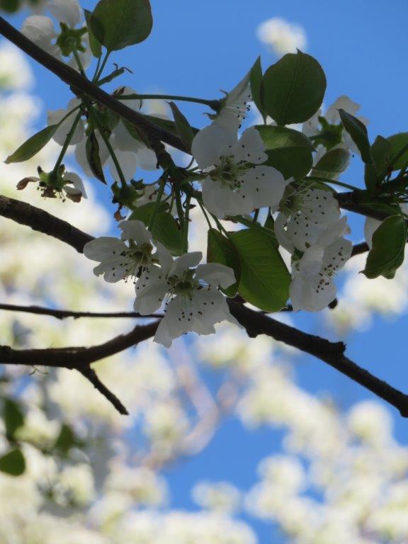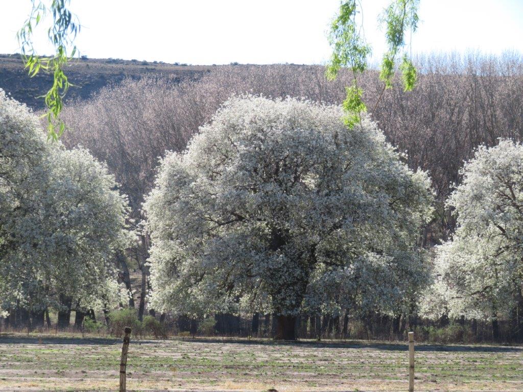 The pear blossoms in Nieu-Bethesda started to concern residents this year as they remained tightly curled up in their green sepals way into October this year. They were wise, as the last week of September was still frosty and cold and not suitable to the strangely scented, chiffony skirted flowers that have finally exposed themselves to the blue skied spring.