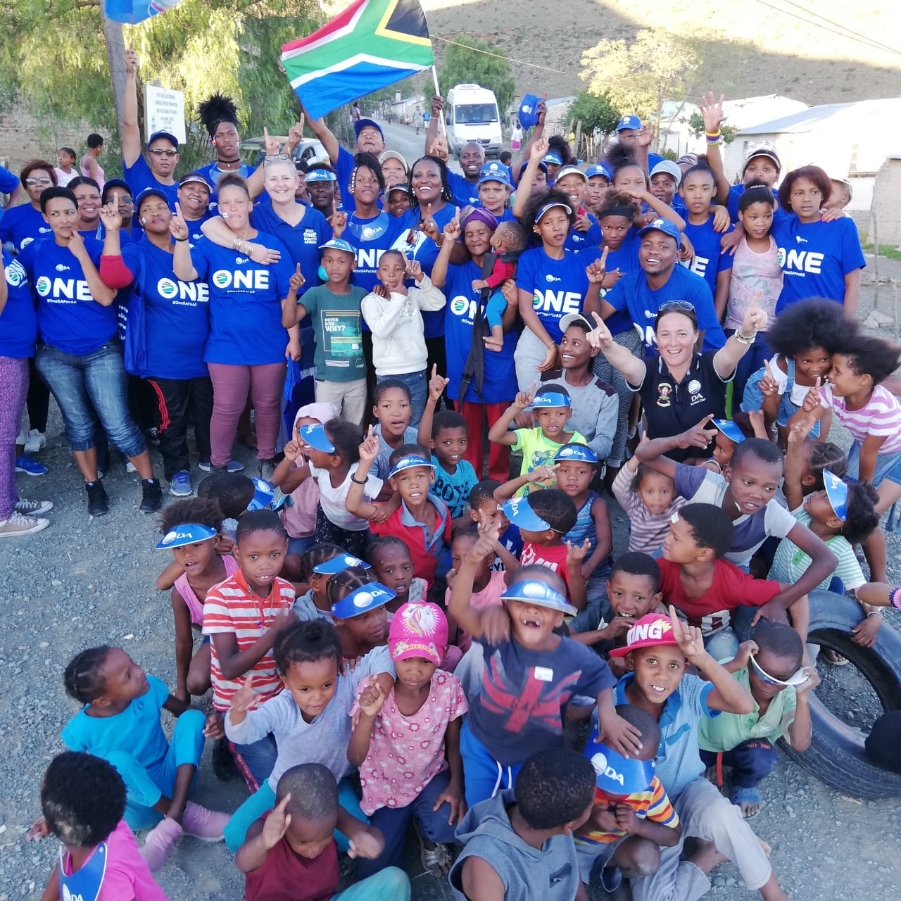 The DA also took part in a ‘blue wave’ through Pienaarsig which created a visual spectacle.