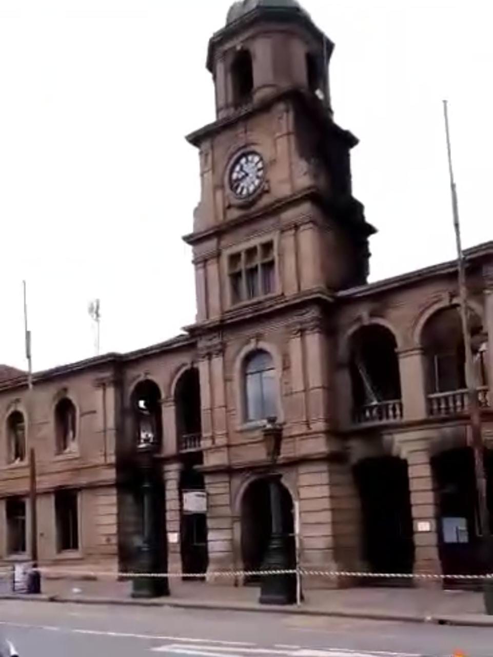 Die historiese stadsaal gebou is vroeg verlede jaar reeds in ñ brand verwoes na betogings teen dienslewering, maar die situasie duur voort.