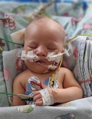 Daar is vasgestel dat daar twee gaatjies in sy hart is en hy is in die neonatale intensiewe sorgeenheid opgeneem.