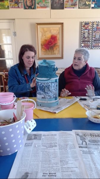 "Elkeen wat 'n kursus kom bywoon, is self verstom deur hul eie kreatiwiteit en dit is ook baie goeie terapie, veral in die tye waarin ons leef," sê Irma Davel, hoof van dié kunsskool.
