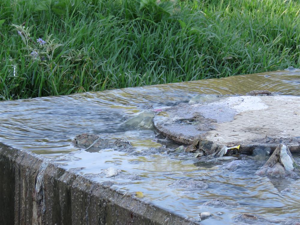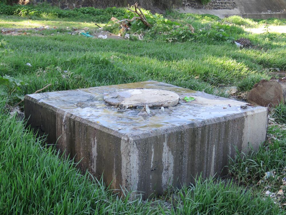 Sewage spilling from the Tronkdrift pump station before the installation of a submersible pump.