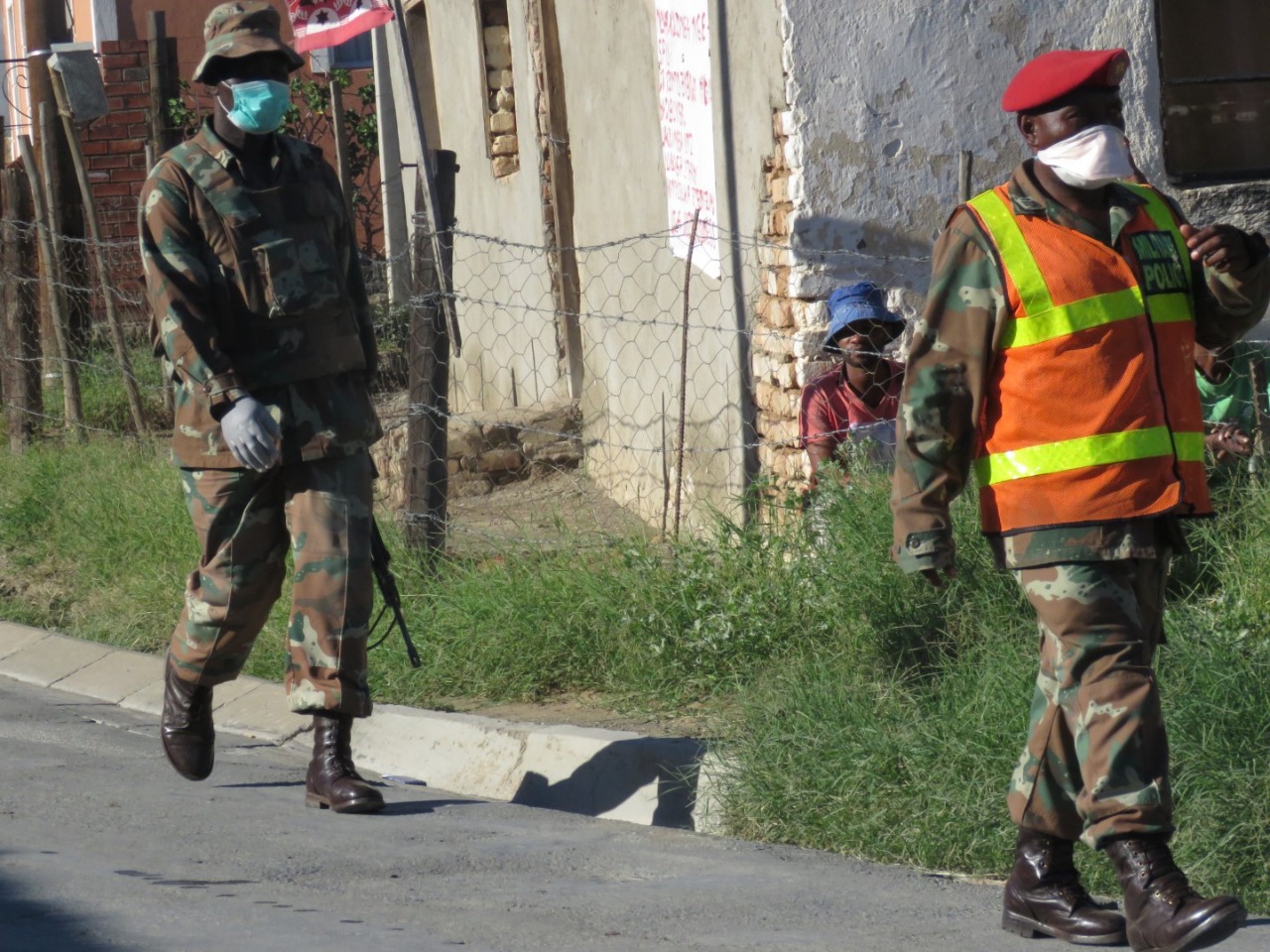 At 3pm, the SANDF, accompanied by local police and municipal law enforcement, drove through Church Street and began patrolling streets on Umasizakhe's side of town, searching for people violating Covid-19 laws.