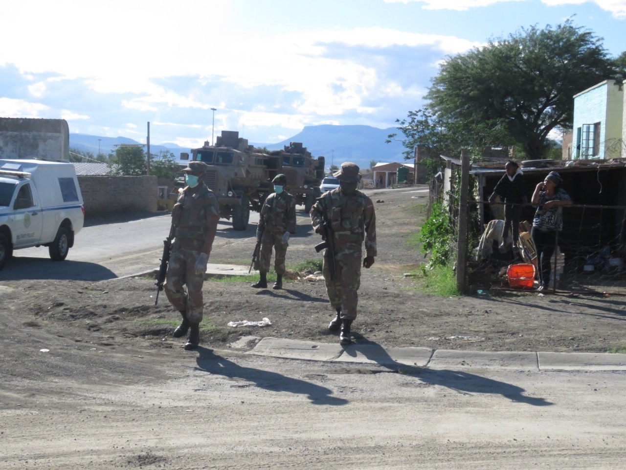The soldiers entered town last night and set up base at Urquhart Caravan Park. It is unclear at this stage how many soldiers are in Graaff-Reinet. Most of today was spent on strategic planning, after which the patrols began.