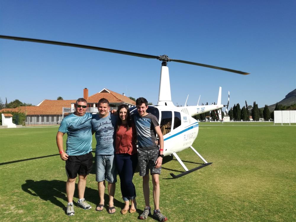 Their Robinson R66 turbine helicopter can accommodate four passengers.